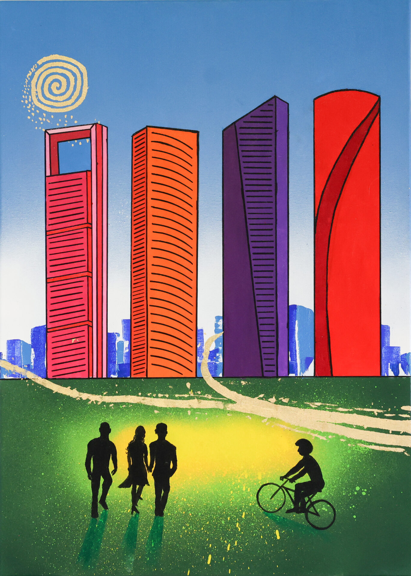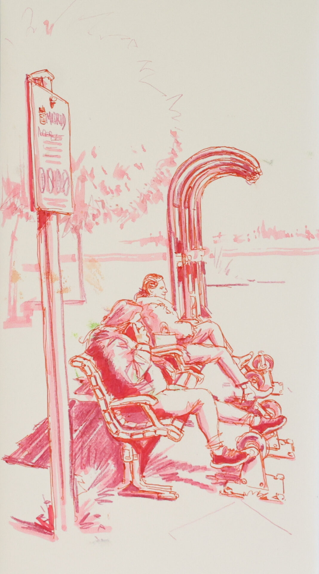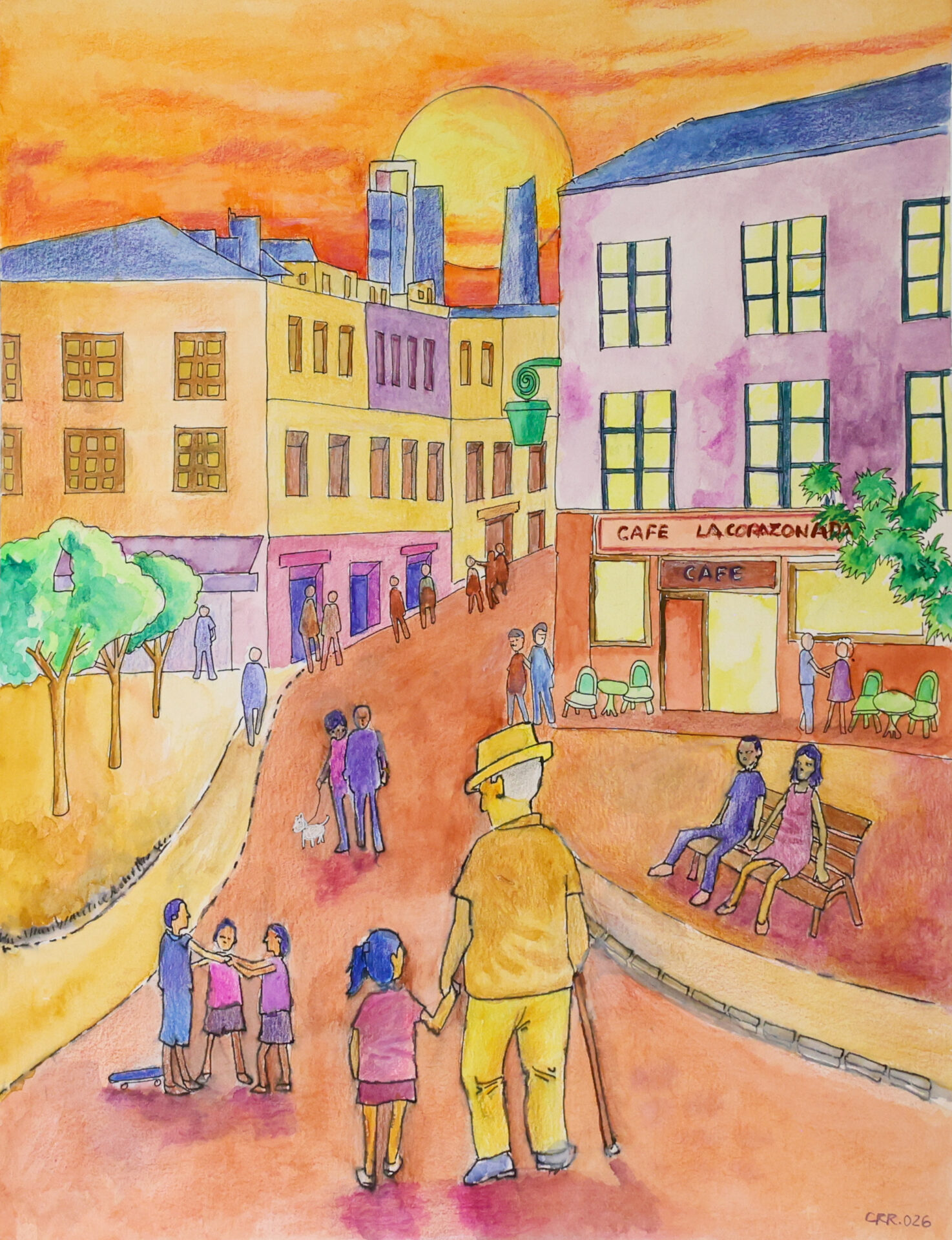 “En todos los barrios de la ciudad, bares o cafeterías son lugares de encuentro (…). Alrededor de una mesa sencilla pueden coincidir distintas generaciones que comparten conversaciones, presencia y tiempo. La escena de esta obra recoge ese instante en el que jóvenes, adultos o mayores se encuentran (…)”.